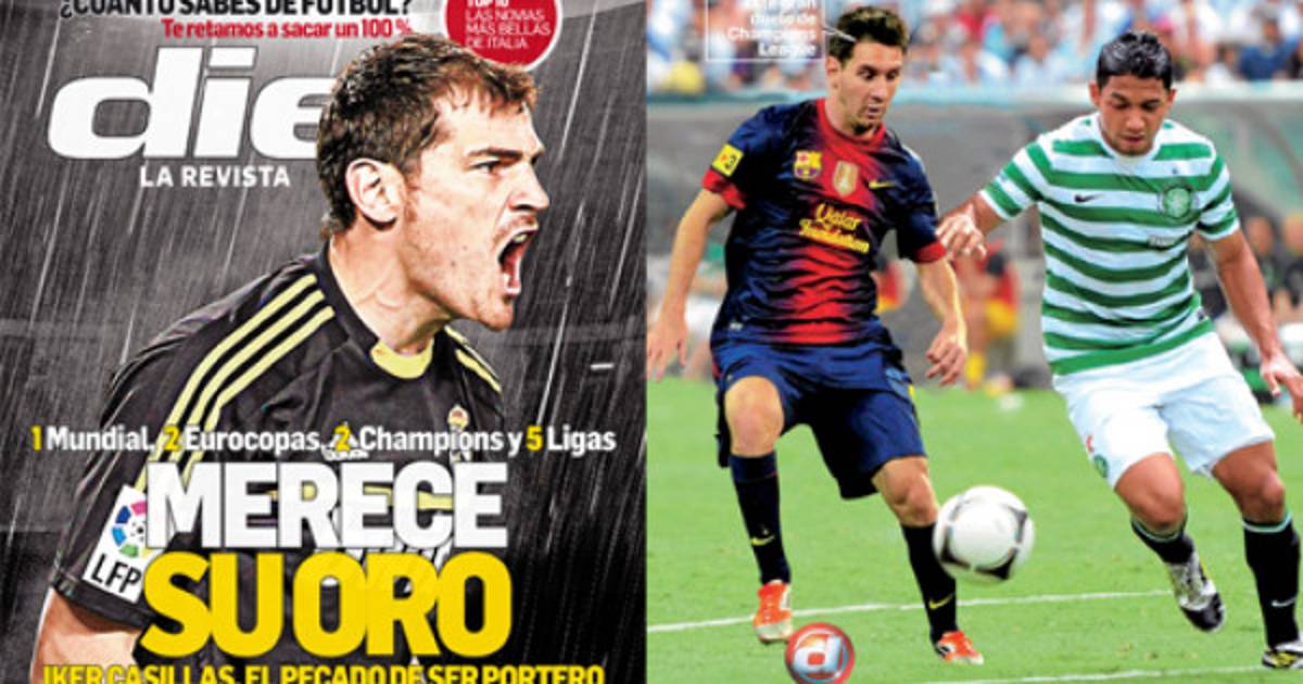 La portada está dedicada a Iker Casillas, portero del Real Madrid y la selección de España, que le dará la batalla a Leo Messi y Cristiano Ronaldo en el premio al Balón de Oro.