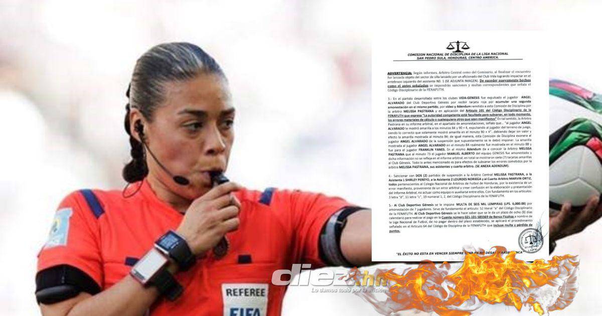 ¡Castigada! La Comisión de Disciplina no perdonó a la réferi Melissa Pastrana, quien cometió errores arbitrales en el duelo de la jornada 15 entre Vida vs Génesis en el estadio Ceibeño.