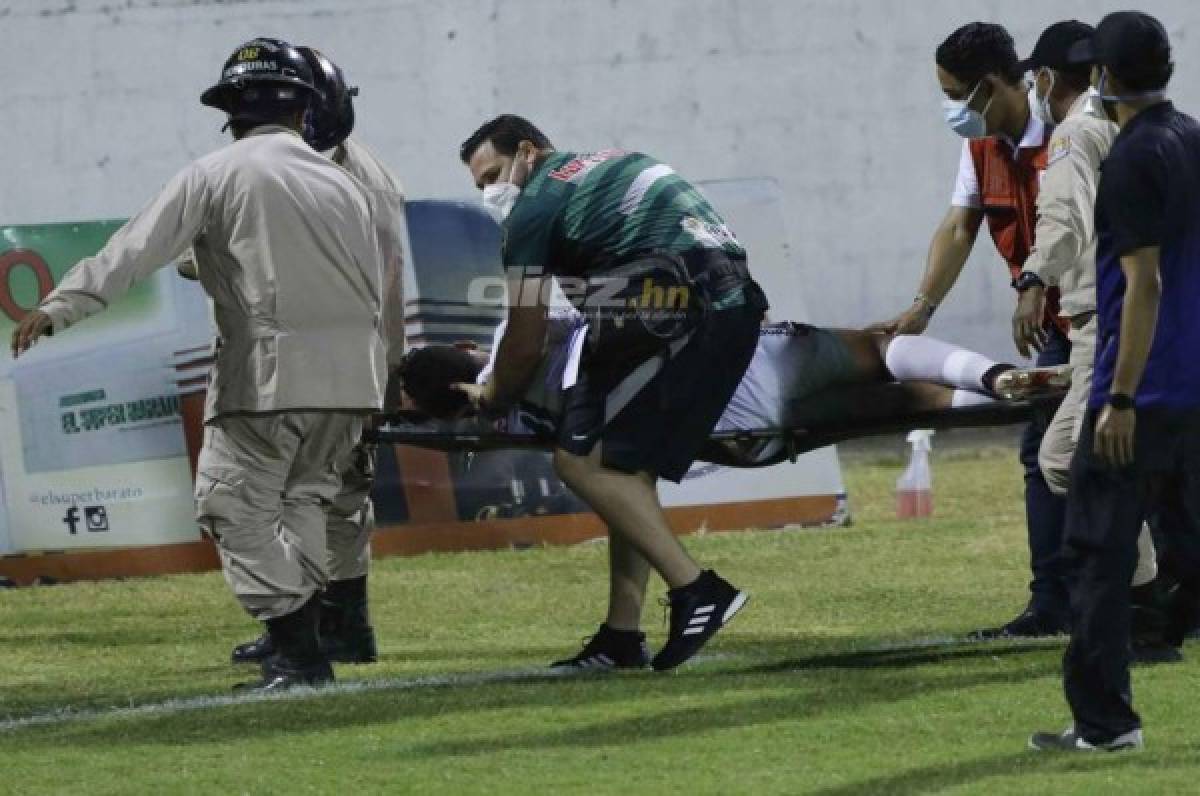 Aldair Simanca, defensor colombiano del Platense tuvo un debut para el olvido, marcó un autogol y de remate, recibió un fuerte golpe en la tráquea que lo mandó al hospital cuando fue agredido por el delantero del Honduras Progreso, Rolman González.