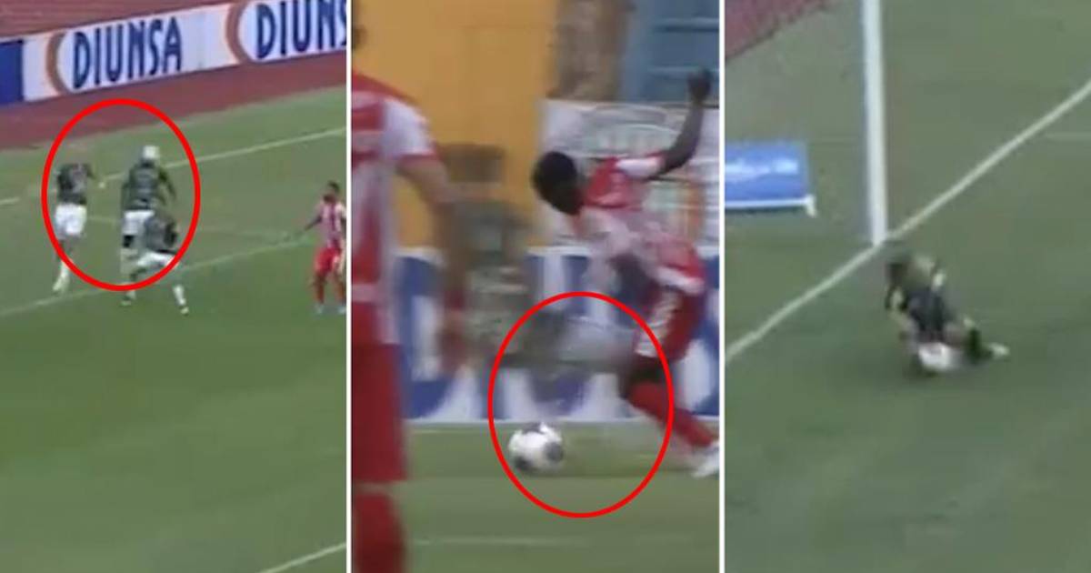 La acción que provocó el lanzamiento de once pasos vino de un centro al área desde la izquierda que Víctor Blasco con un cabezazo la metió nuevamente al centro y el defensa argentino Braian Molina rechazó muy mal en el área y el balón le quedó a a Marvin Bernárdez, este eludió fácilmente la marca de Víctor Berríos quien infantilmente puso su pie y lo derribó.