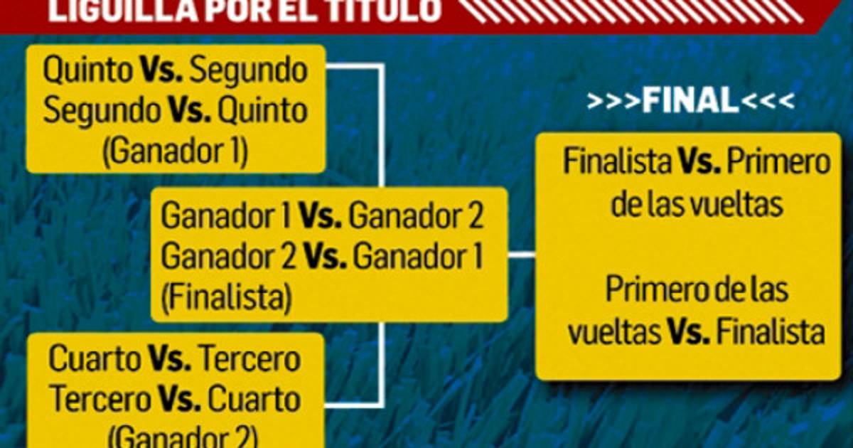 La liguilla por el título de la parte superior del diagrama sirve para encontrar al “finalista” que será el rival del equipo que resulte “primero de las dos vueltas” para decidir en dos partidos al campeón del Torneo Apertura.