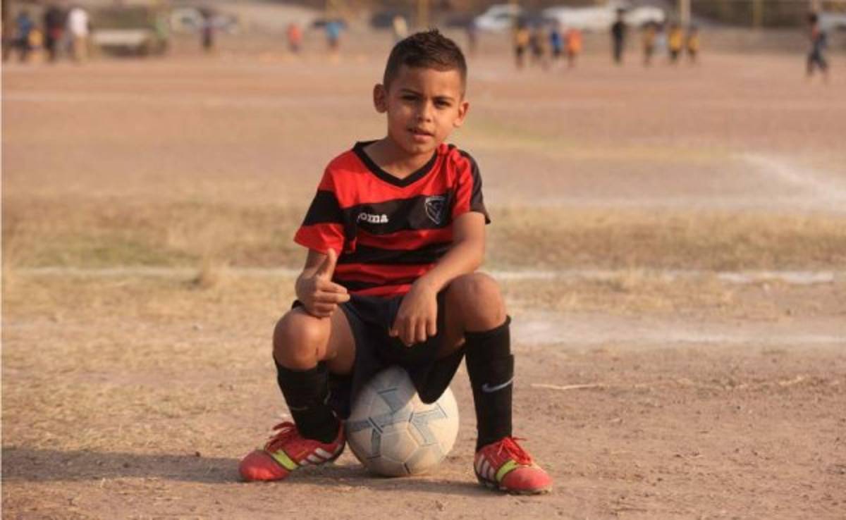 Juega con el equipo Cachorros de la Liga Andrés Salinas de Tegucigalpa y lo impresionante de su historia es que en el último torneo anotó 85 goles en los 32 partidos que disputó en la categoría U-8, algo sin precedentes hasta ahora, según cuentan los miembros de la Liga.