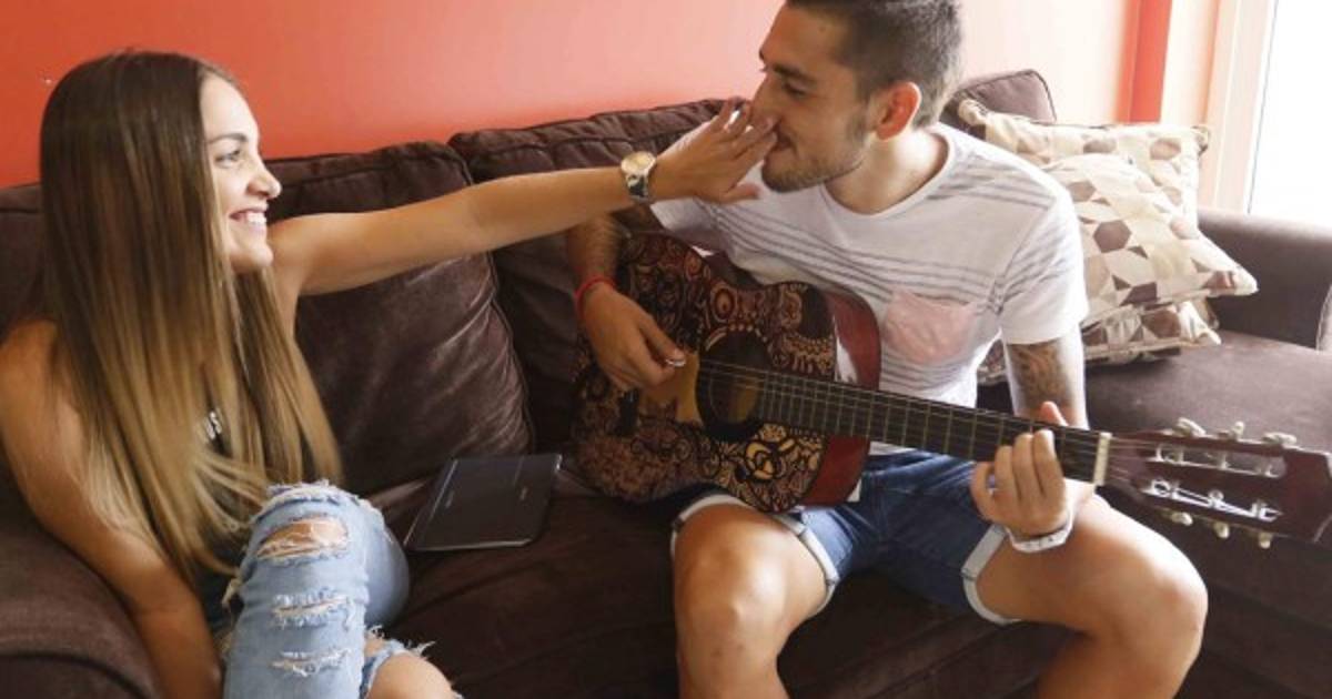 'Ella me hace estar feliz, todos los días; siempre está al lado mío, más con todo lo que me pasó el año pasado, es muy importante para mí', inicia expresando Lucho Ursino, mientras su amada Kristina se sonroja ante tal demostración de afecto con la guitarra en la mano.