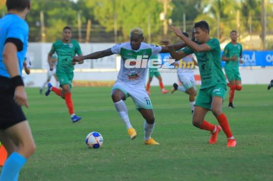 ¡AFUERA! Ilce Barahona dejó en el camino a cuatro jugadores, la sirvió para Byron Rodríguez quien la mandó afuera. Se salvó Marathón al 65.