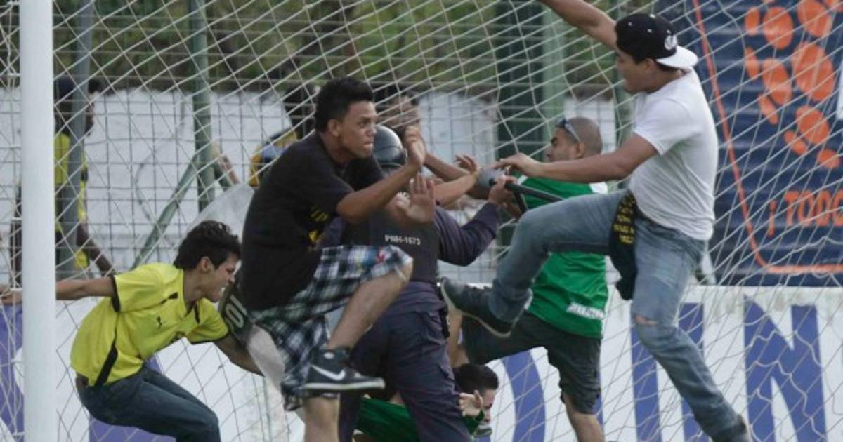 La seguridad del equipo visitante, Real España, se vio vulnerable porque las barras de ambos clubes ingresaron al campo de juego y armaron un caos.