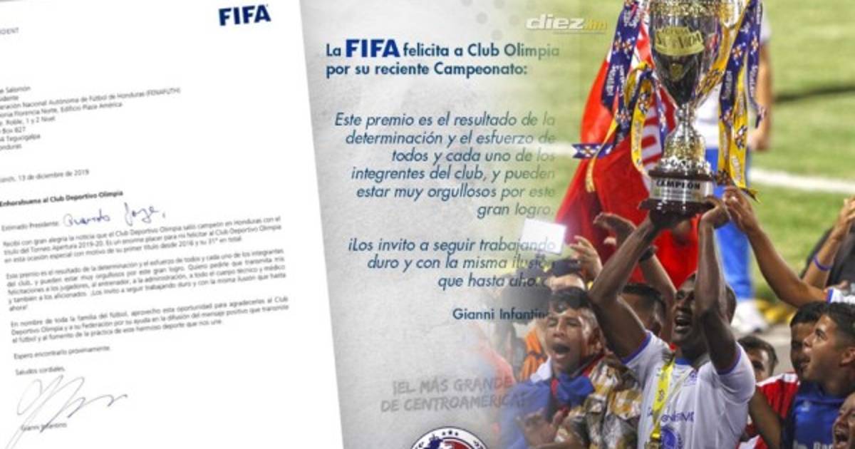 “Recibí con gran alegría que Olimpia salió campeón de Honduras. Es un enorme placer para mí felicitar al Olimpia en esta ocasión con motivo de su primer título desde 2016 y 31 en total”, se lee en el primer párrafo.