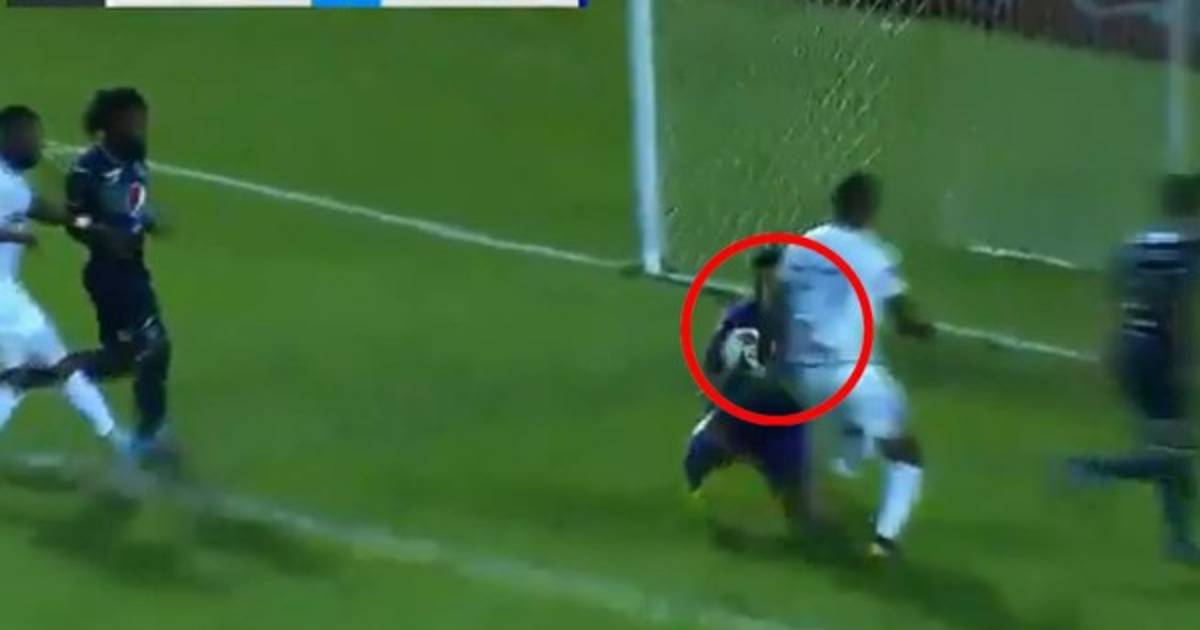 Jerry Bengtson buscó rematar la pelota cuando Marlon Licona salió para intentar quedarse con el esférico, pero no pudo tras un contacto del delantero del Olimpia con la mano. Fue así que Jorge Benguché se quedó con el rebote y marcó el 1-0. Pero no ha contado.