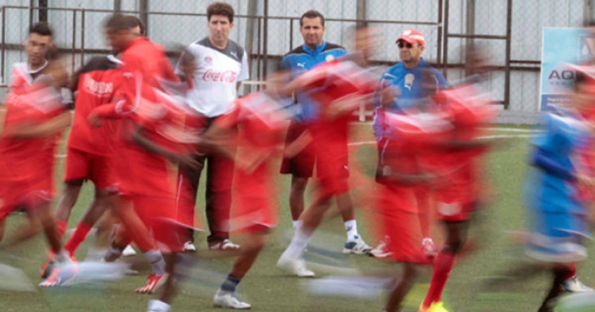 En argentino converso con su cuerpo técnico Oscar 'Cocli' Salgado, Nerlin Membreño y el preparador físico Marcelo Emanuele antes de dar inicio los trabajos.