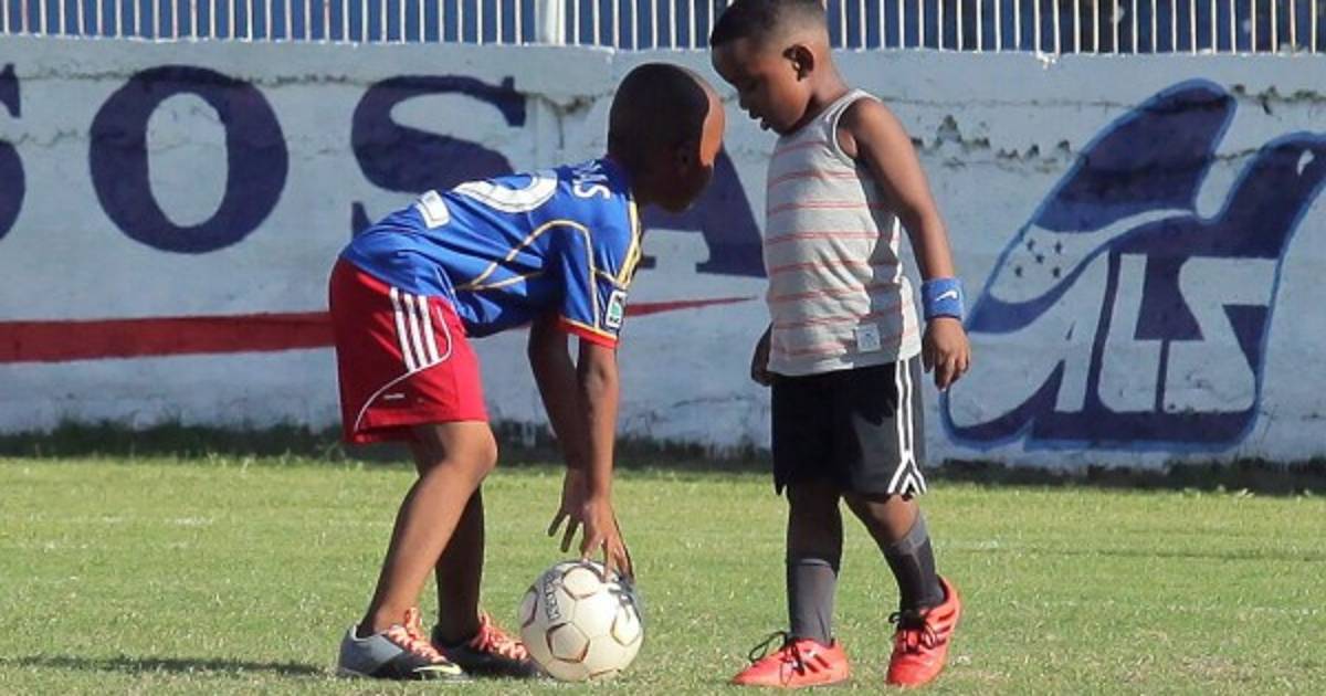 Previo a la sesión de entrenos, ambos niños de 5 años de edad ingresaron al campo para tener contacto con el balón.