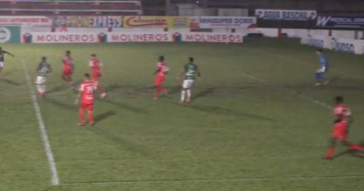 Increíblemente el asistente Walter López sancionó un fuera de juego inexistente ya que el lateral izquierdo de los locales Klifox Bernárdez lo habilitaba.