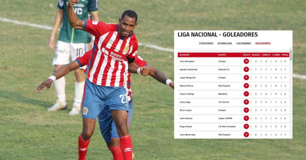 La tabla de goleadores del torneo Clausura 2023 de la Liga Nacional sigue teniendo a Jerry Bengtson, delantero del Olimpia, como líder solitario.