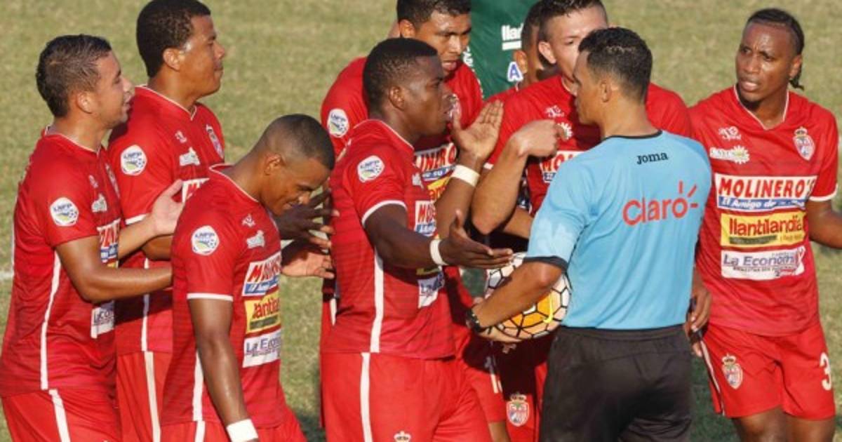 Jugadores del Real Sociedad protestando contra el árbitro Nelson Salgado quien no les permitió las ofensas y expulsó a Ian Osorio y Jonathan Paz. Foto DIEZ
