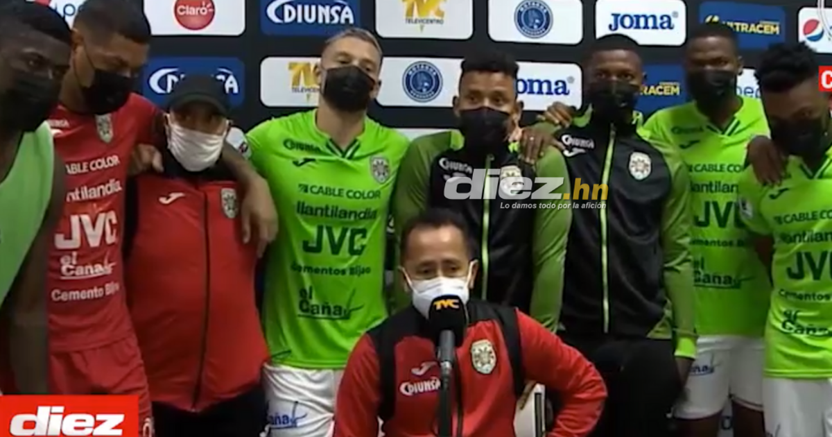 Dentro del grupo de jugadores que ingresaron a la sala de prensa destacan: Denovan Torres, Luis Garrido, Elmer Güity, Isaac Castillo, Solani Solano, Ovidio Lanza entre otros.