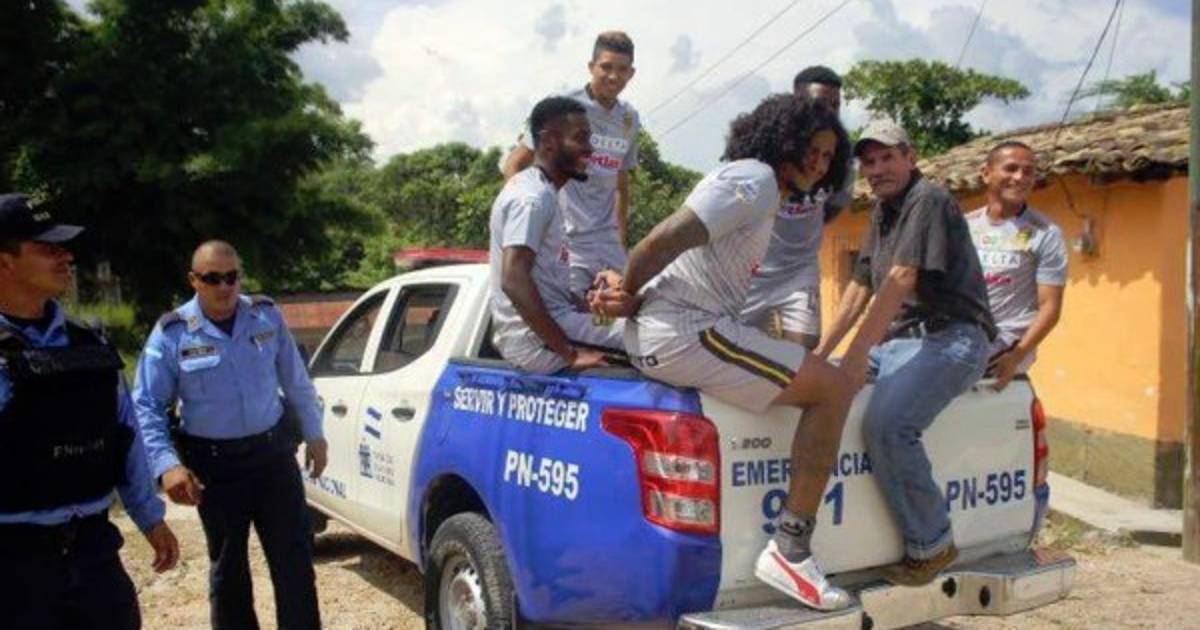 Los agentes policiales los llevaron en el vehículo a la cancha donde disputaron el amistoso y fue antes de ello que el jugador aprovechó para sacar la gráfica.