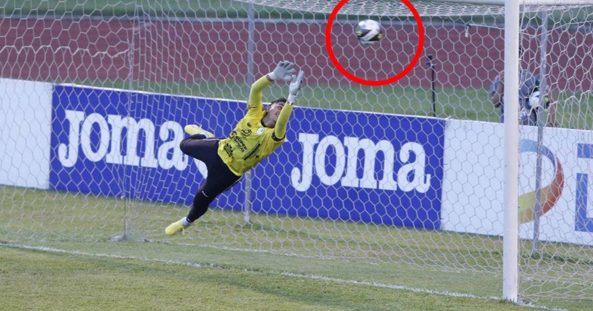 El futbolista de Marathón remató al palo que defendía José Mariano Pineda y la pelota se metió en el ángulo. La estirada del portero de Juticalpa solo sirvió para la foto.