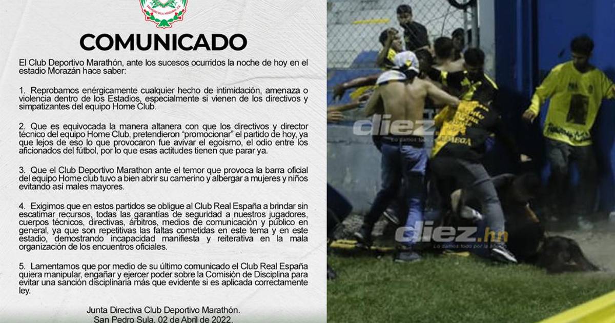 Marathón asegura que es “equivocada la manera altanera con que los directivos y director técnico del Home Club pretendieron “promocionar” el partido de hoy, ya que lejos de eso lo que provocaron fue avivar el egoísmo, el odio entre los aficionados del fútbol por lo que esas actitudes tienen que para ya”.