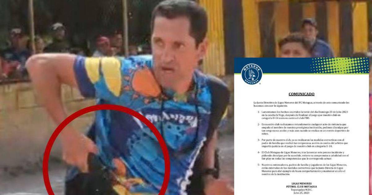 ”Por parte de nuestro club, ya se realizaron las medidas correctivas con el padre de familia que realizó tan vergonzosa acción en contra del árbitro que impartía en el juego de nuestro club en categoría U-14. El Club Motagua de Ligas Menores, tras lamentar este penoso incidente y pidiendo disculpas por lo sucedido, reitera su compromiso a cabalidad con el fair play en todas las competencias que le corresponda actuar”, dice el comunicado.