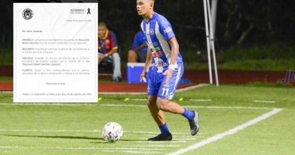 'Lamentar profundamente la partida de Nazareth Belén Sánchez, hija de nuestro futbolista Durvin Sánchez', dice el acuerdo de duelo del Victoria.