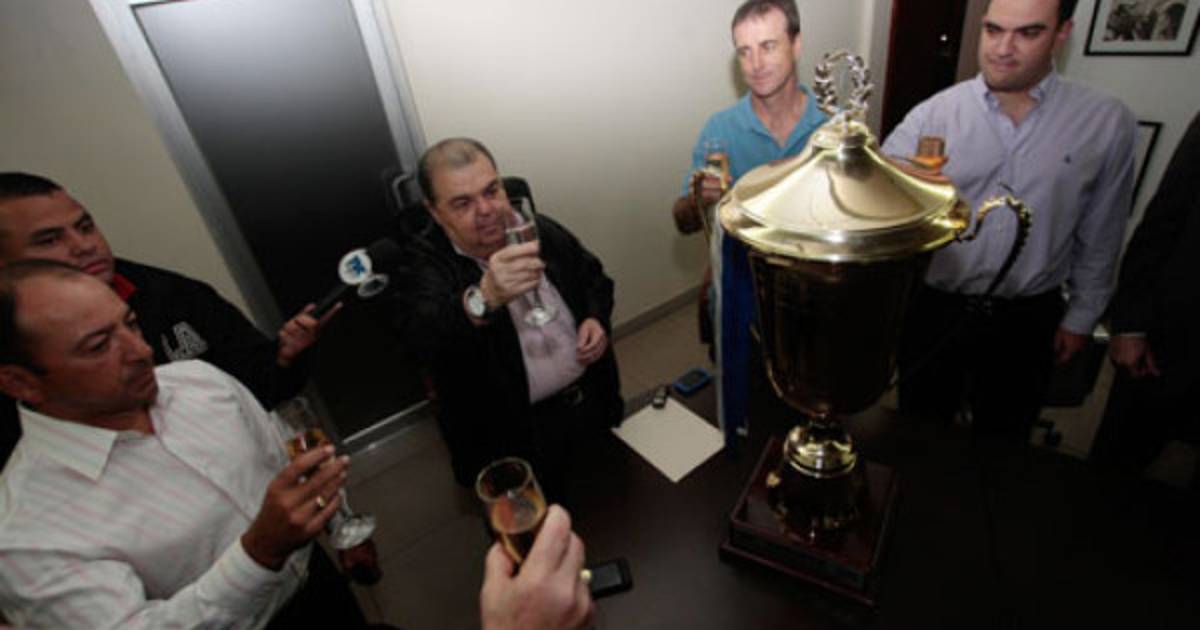 El brindis se realizó en la sala de juntas de la directiva olimpista. 'La Copa regresó a casa y está en el lugar de donde no debe salir. Estamos muy felices', comenzó diciendo emocionado el presidente Ferrari.