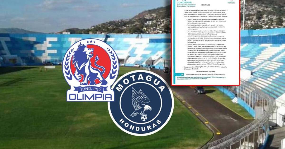 Olimpia y Motagua han conocido la fecha en que la Comisión Nacional del Deporte de Honduras (CONDEPORH) les permitirá usar el estadio Nacional Chelato Uclés antes de su cierre por obras de modernización.