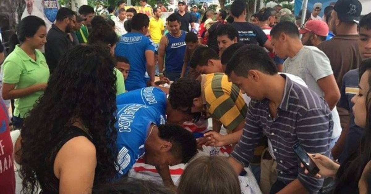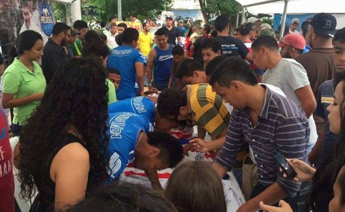 Con bolígrafo en mano los jugadores del plantel comenzaron a firmar camisas, gorras, sudaderas, banderas y todo artículo con los colores del Olimpia.