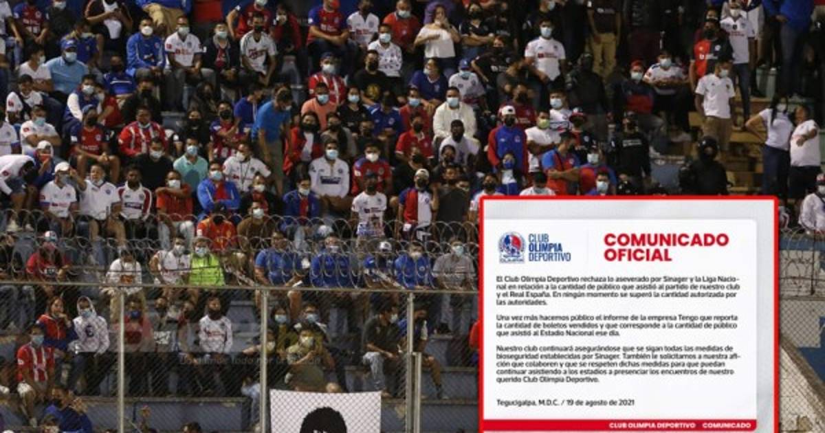Esta situación hizo que los albos respondieran a través de sus redes sociales. ''El Club Olimpia Deportivo rechaza lo aseverado por Sinager y Liga Nacional en relación a la cantidad de público que asistió al partido de nuestro club y Real España. En ningún momento se superó la cantidad autorizada por las autoridades'', afirman.