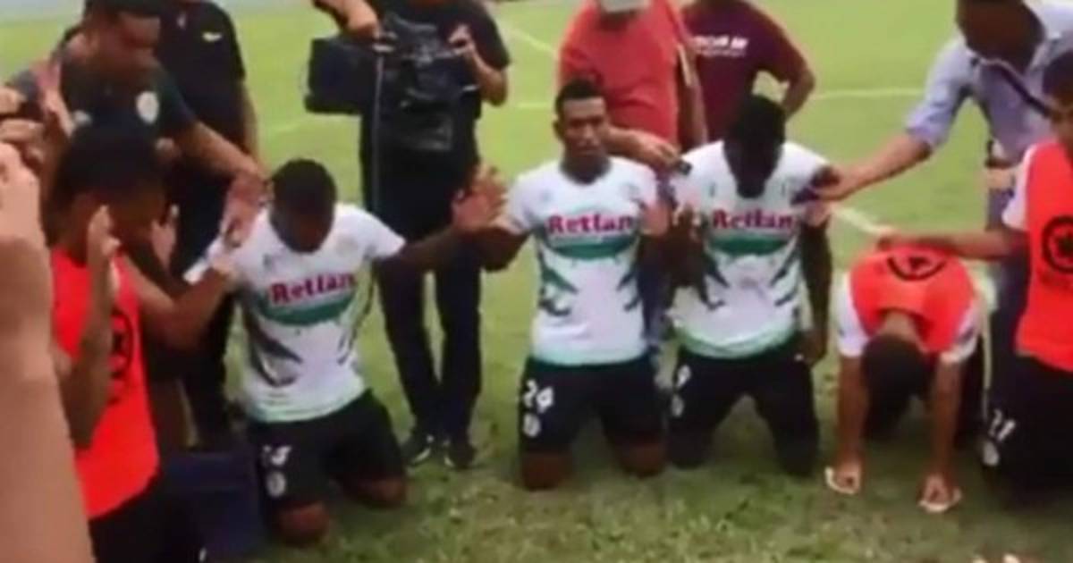 Luego de este gane, los jugadores del Juticalpa se reunieron en el centro del campo y dieron las gracias a Dios porque todo les salió bien.