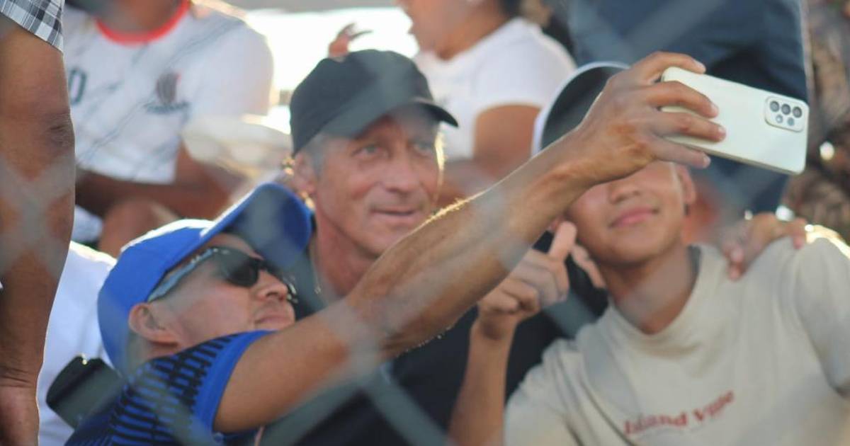El estratega merengue disfrutó el partido como un aficionado más, por lo que no tuvo problema en tomarse fotografías con los fanáticos presentes en el partido correspondiente a la Segunda División del país.