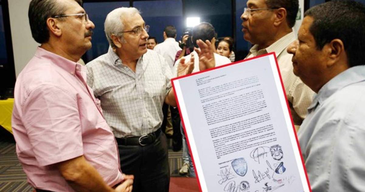Firman: Presidentes de los clubes, Marathón, Vida, Honduras Progreso, Real Sociedad, Platense, Real de Minas y Lobos de UPN.