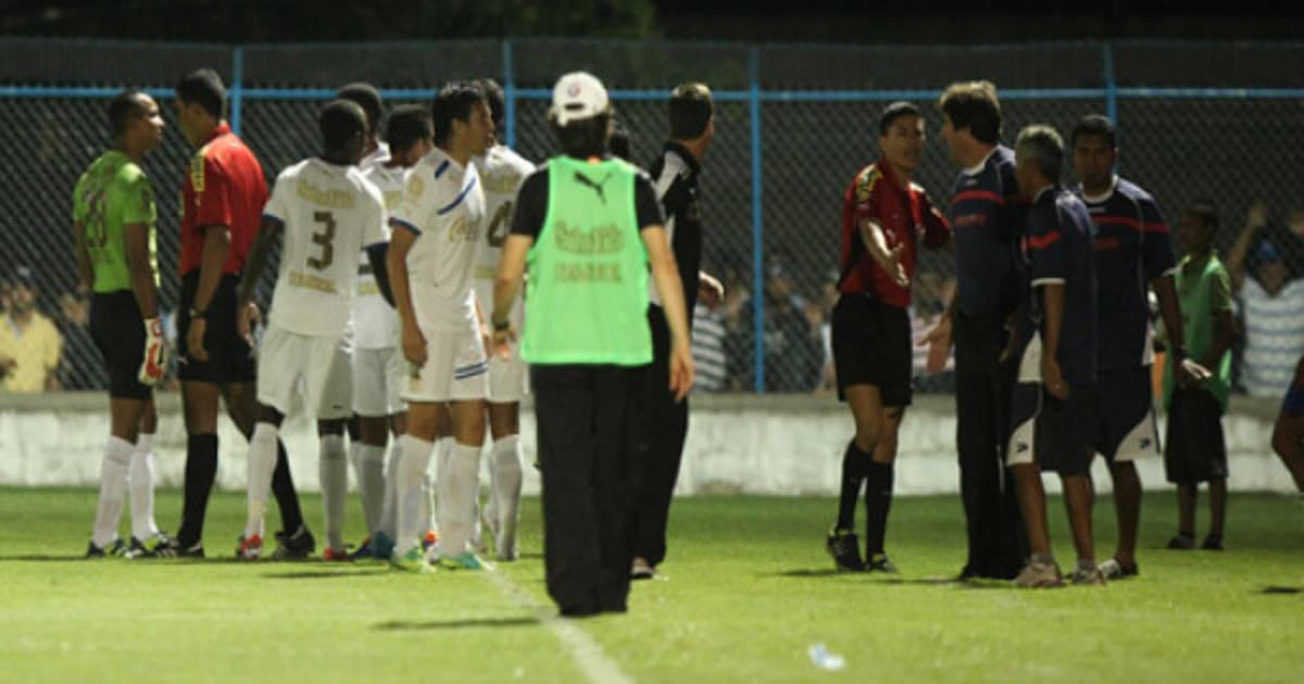 Los involucrados en el choque son el guardameta Donis Escober de los Albos y los árbitros del choque.