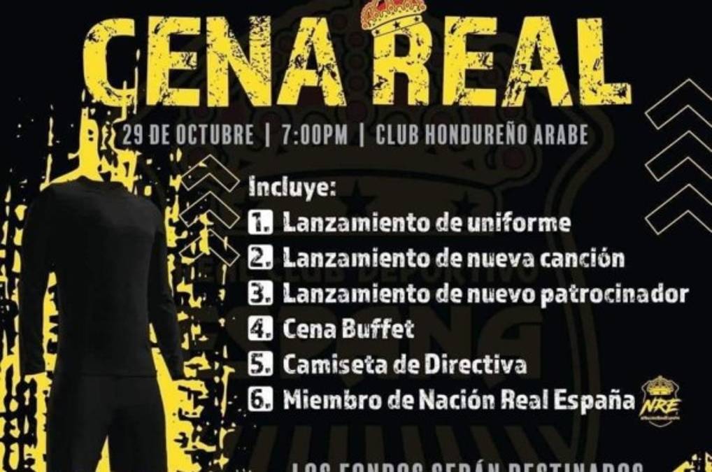 Las personas que decidan estar presentes tendrán derecho a una cena buffet, estar presente en el lanzamiento del nuevo uniforme, de una nueva canción, lanzamiento de patrocinador, camiseta de la directiva y ser miembro de Nación Real España.