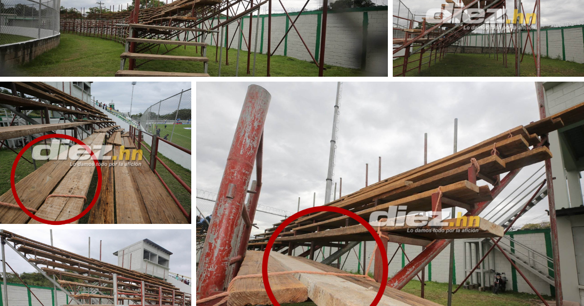 En riesgo total se convirtió una de las graderías improvisadas que colocó el Motagua en una de las cabeceras del Estadio Carlos Miranda para la final de ida del torneo Apertura 2022.
