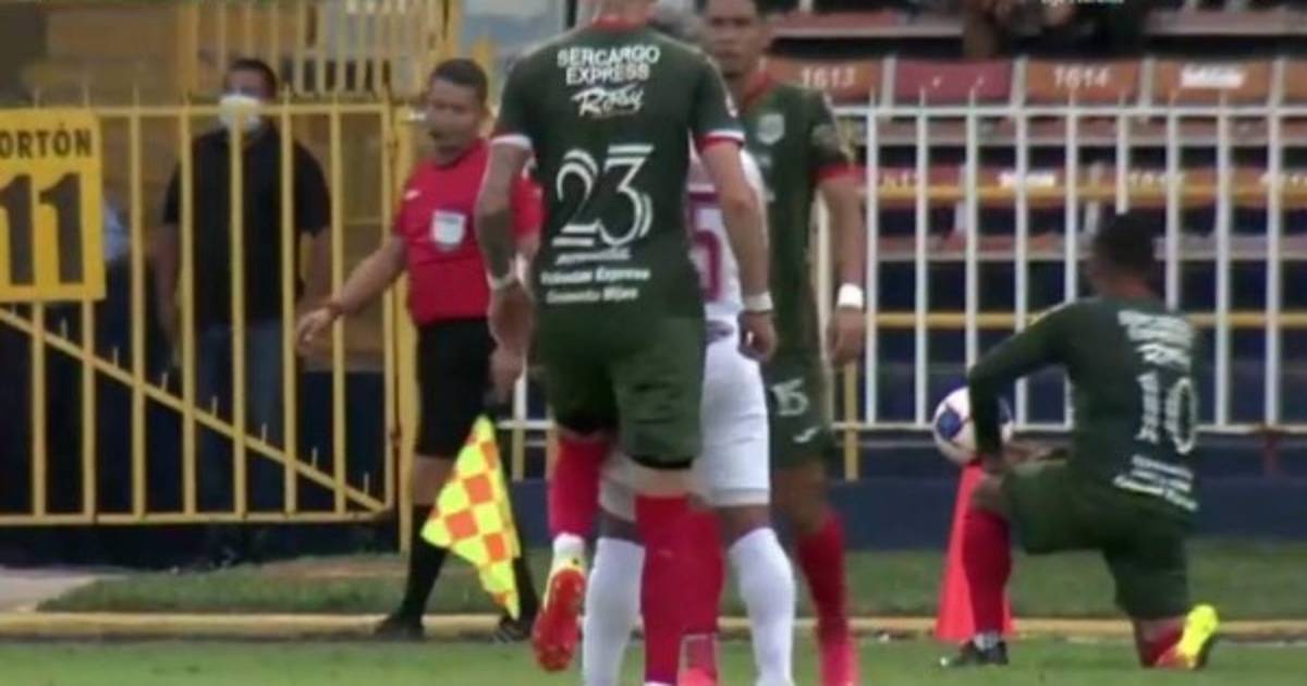 El central Martínez solamente llamó la atención del jugador del Marathón tras su travesura y se salvó de una efímera expulsión.