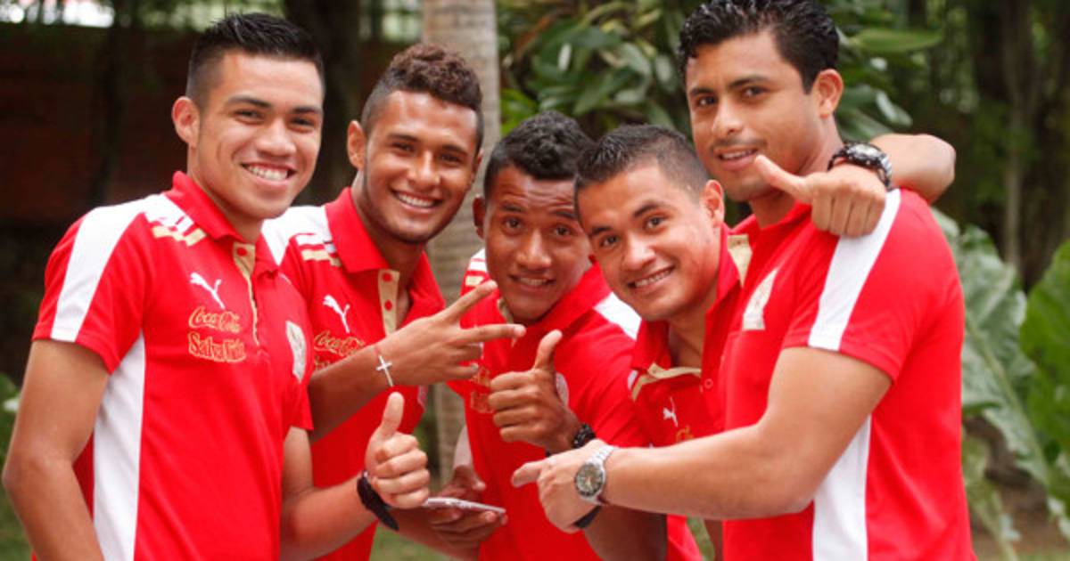 Al salir del almuerzo, los jugadores jóvenes de Olimpia, Luis Garrido, Roger Rojas, Alex López y José Escalante pusieron el ambiente.
