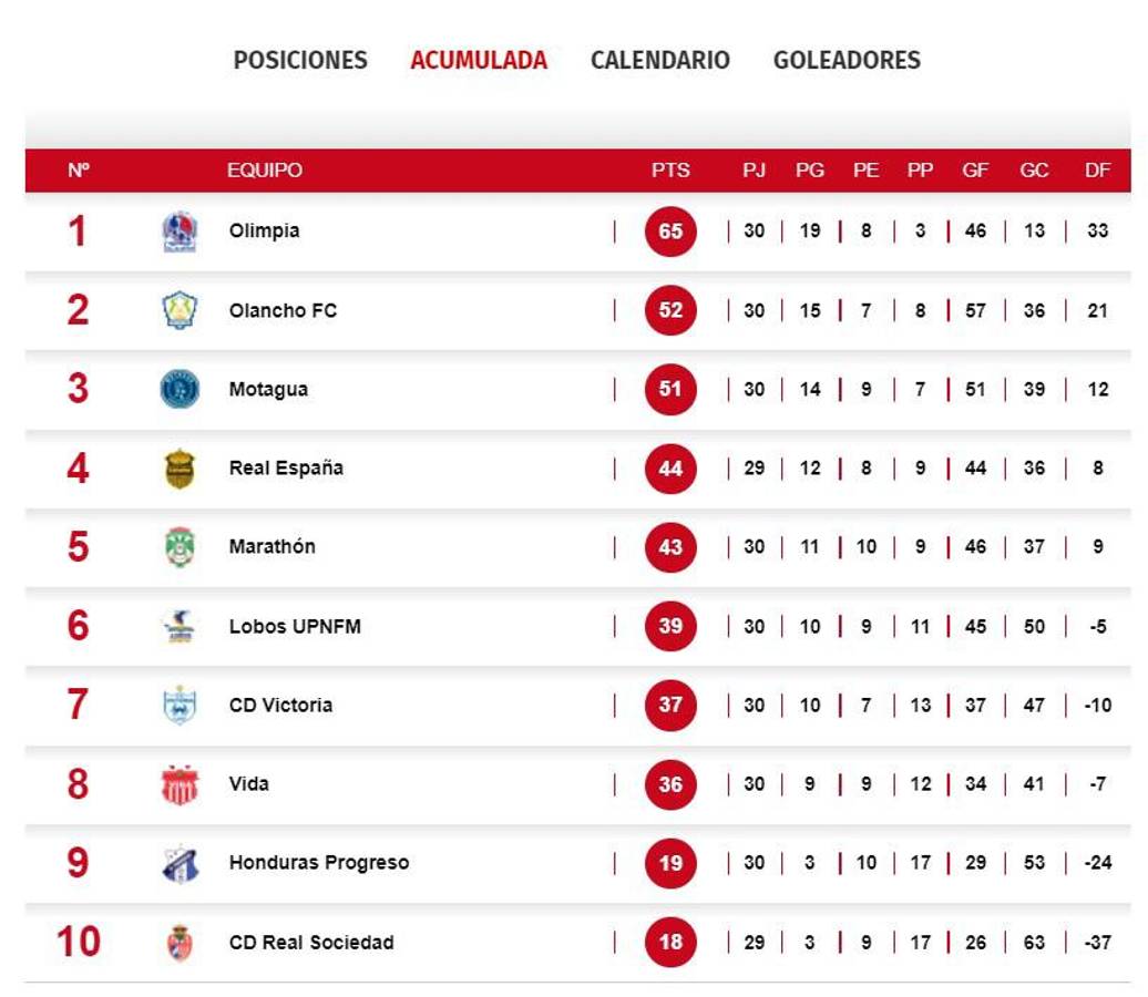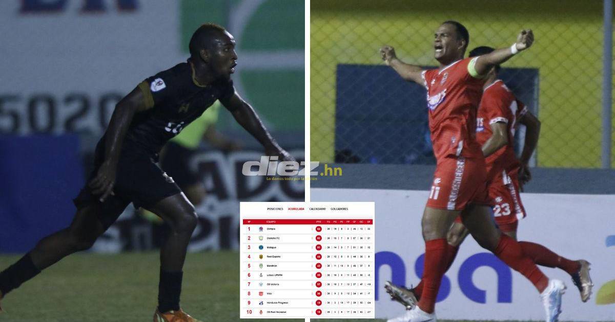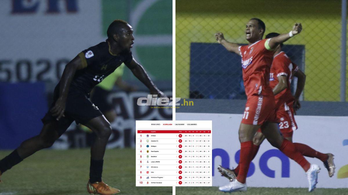 Con este resultado, el Honduras Progreso (9°) sigue arriba en la tabla del descenso con (19 puntos), mientras que la Real Sociedad se queda en el último lugar con 18 puntos y por el momento sería el equipo descendido.