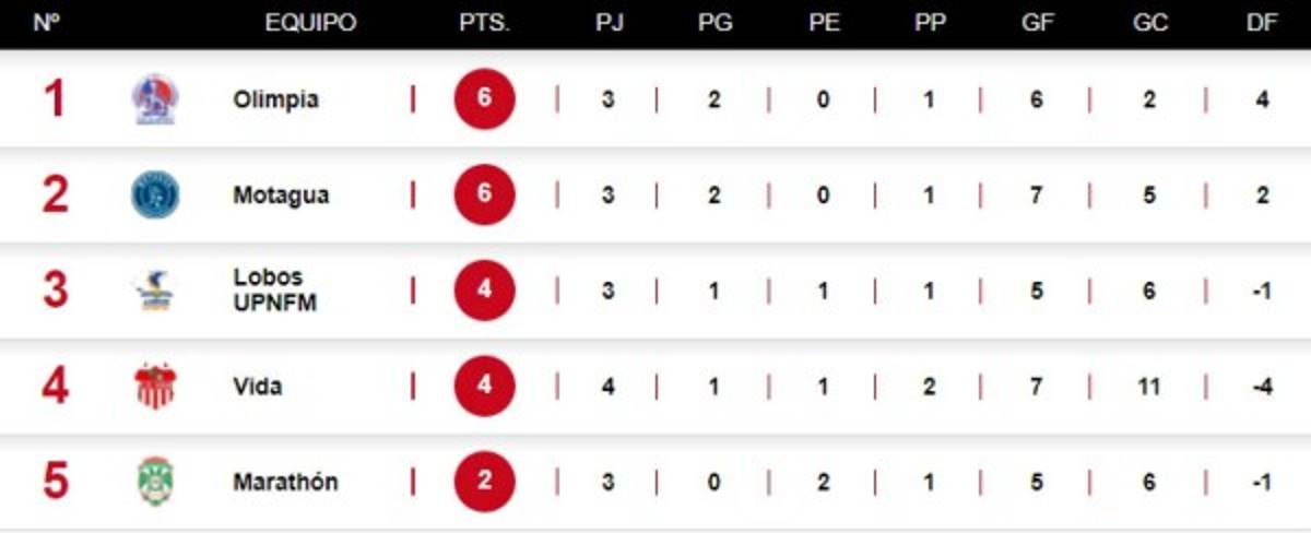 Los albos han conseguido 9 puntos en cuatro partidos después de tres victorias y una derrota, mientras el Motagua logró igual cantidad, pero los albos tuvieron una mejor diferencia de goles.