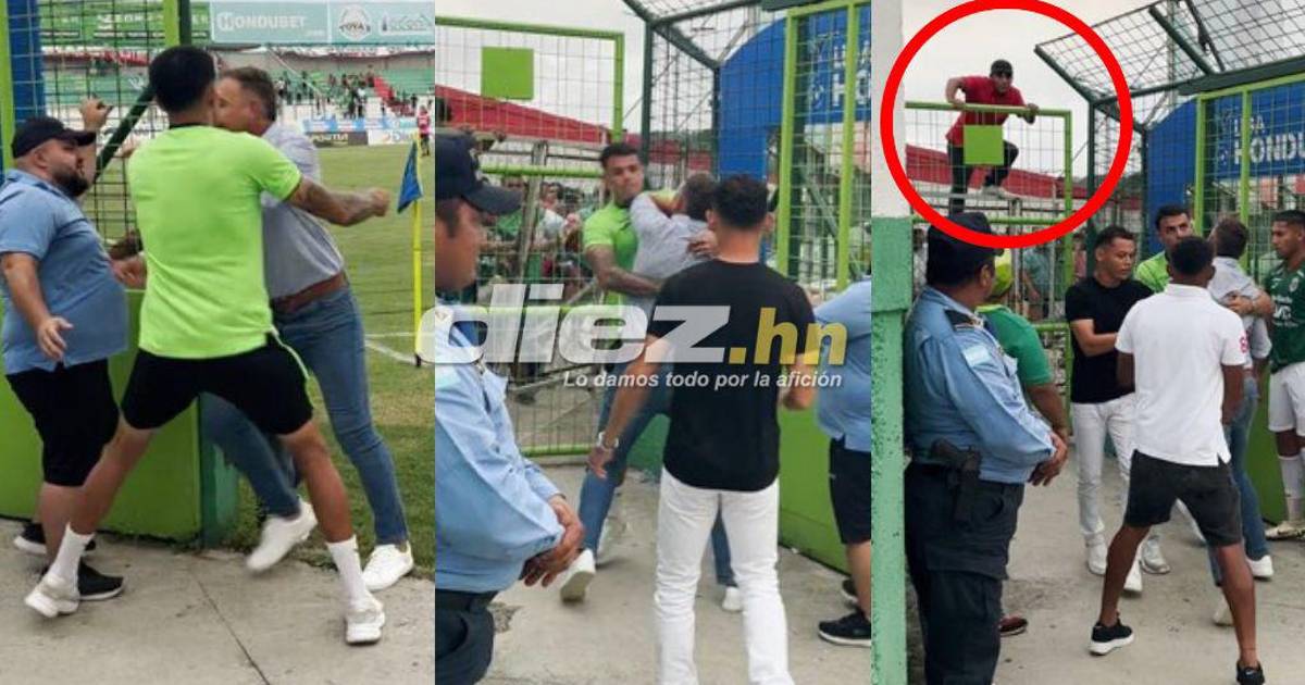 Algunos hinchas de Marathón no dudaron en acercarse para increpar al DT argentino, pero no pasó a más gracias a que una miembro del equipo de San Pedro Sula detuvo a Hernán Medina.