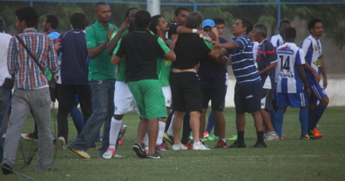 El incidente que generó el zafarrancho fue la pelea entre el preparador de porteros de Marathón, Carlos 'El Chato' Padilla, quién intentó irse a los golpes con el jugador del Victoria Miguel Castillo.