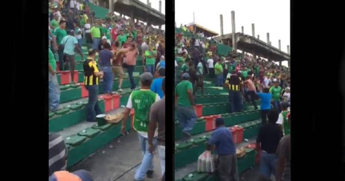 En las graderías del sector preferencial varios aficionados verdes y aurinegros se fueron a los golpes una vez concluido el partido.