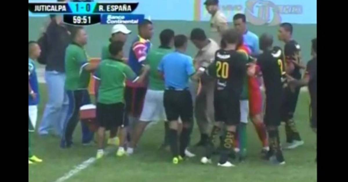 Y entonces apareció un bombero, que tenía la intención de evitar una pelea entre los jugadores y lo logró. Finalmente se llevó al futbolista del Juticalpa FC para atenderlo.