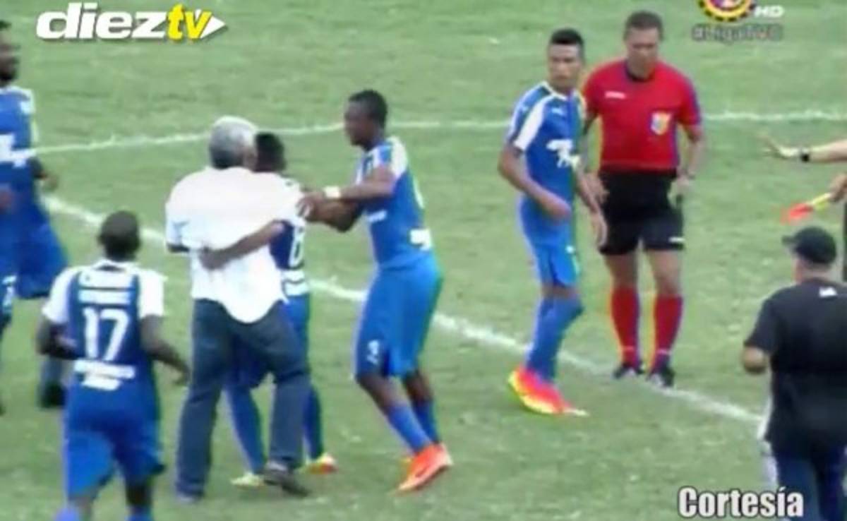 Puerto Cortés y tras el juego el técnico Héctor Castellón no soportó la molestia y terminó protagonizando un hecho bochornoso.