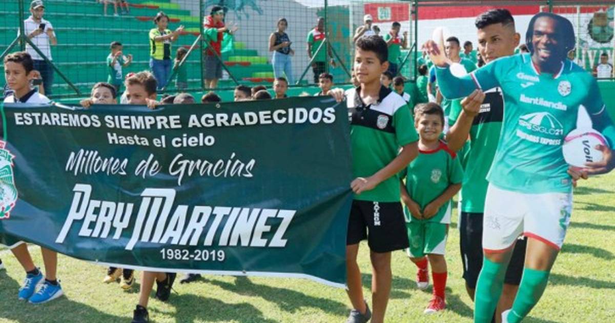 La leyenda 'estaremos siempre agradecidos, hasta el cielo; millones de gracias, Pery Martínez', decoró una bonita pancarta que fue acompañada por dos figuras perfectas de cartón con la imagen del mundialista en Sudáfrica 2010.
