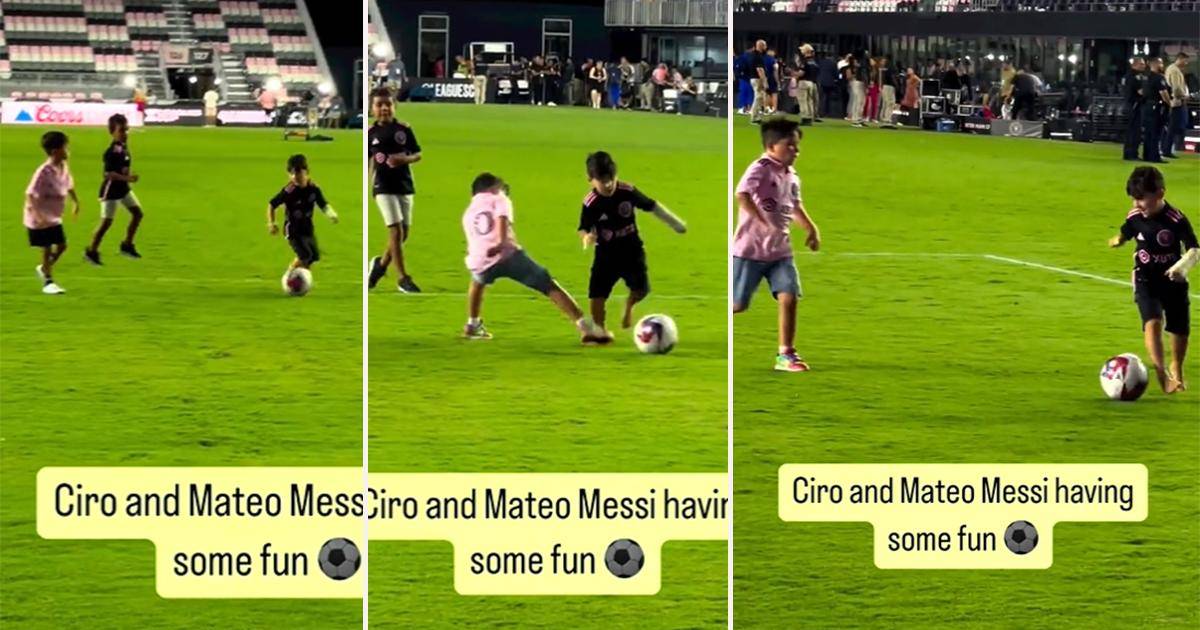 Una vez finalizado el encuentro con toda la algarabía que generó el rosarino, Thiago, Mateo y Ciro se pusieron a jugar en el DRV PNK Stadium, y el más pequeño demostró que también quiere seguir los pasos de su padre.