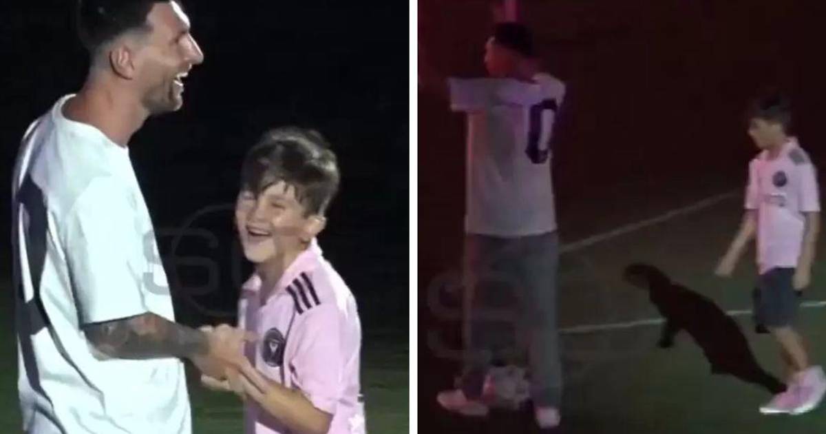Messi fue acompañado por Antonela Roccuzzo y sus tres hijos, el mayor de ellos, Thiago le hizo un inesperado caño que sorprendió al argentino de 36 años.