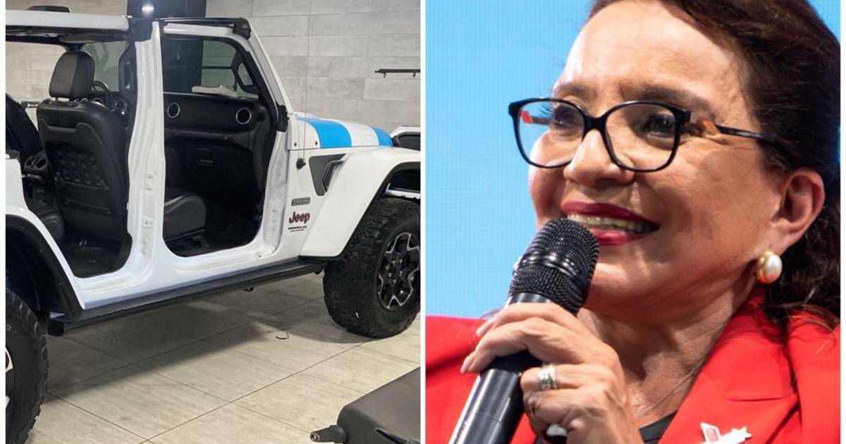 El automóvil luce tres Banderas de Honduras con el tono turquesa en la parte frontal, un distintivo especial para la presidenta.