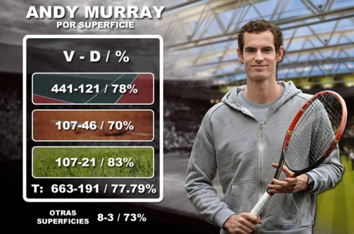 Hablando de partidos, el récord global del británico es de 663 victorias y 191 derrotas, hablamos de que salió airoso del 77.79% de sus encuentros, llevándose un total de 45 títulos y más de 61 millones de dólares (61.046.255$ exactamente) en premios.