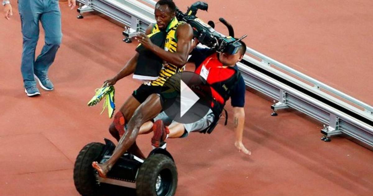 El jamaicano Usain Bolt fue derribado por un cámara de televisión que se desplazaba sobre un vehículo eléctrico de dos ruedas ('segway') y que le embistió por detrás mientras celebraba el título de campeón del mundo de 200 metros en Pekín.