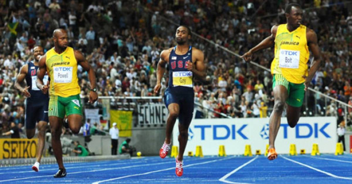 Bolt estableció el récord del mundo en la capital alemana con un tiempo de 9,58 segundos, seguido por Gay con 9,71 en el crono (entonces marca tope de Estados Unidos) y por Powell, anterior plusmarquista mundial, en el tercer cajón del podio.