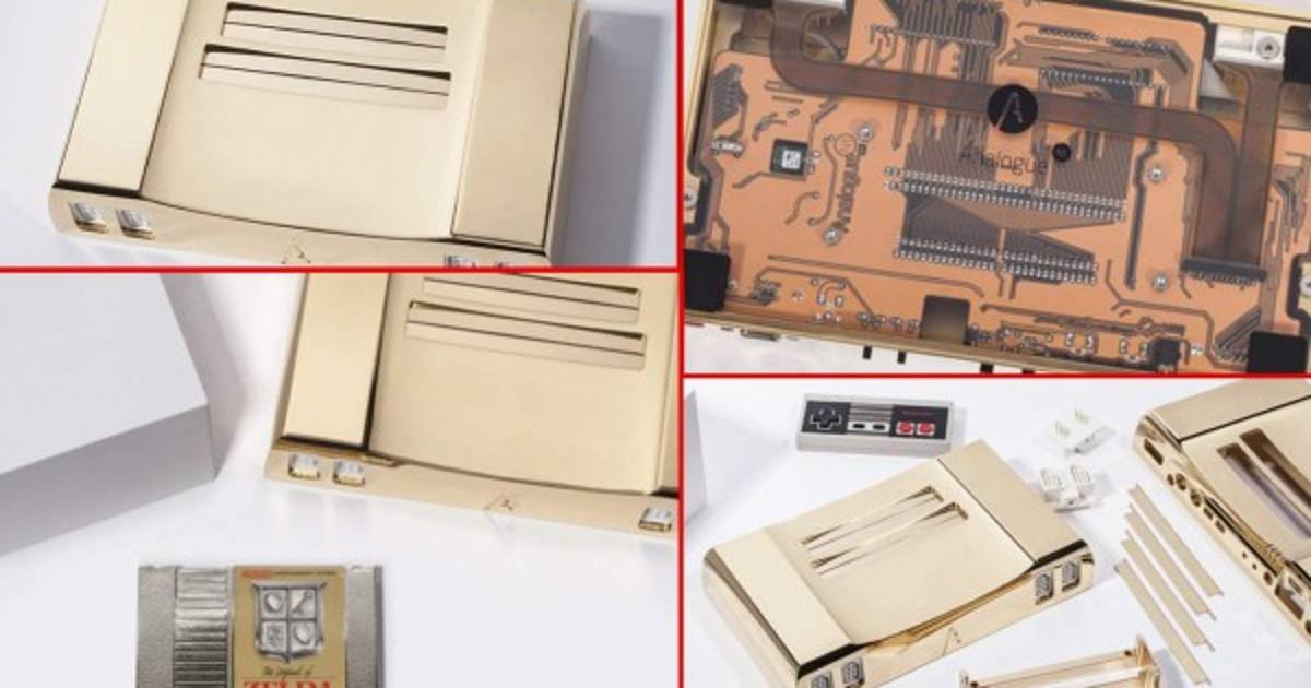 Todas y cada una de las piezas de aluminio de la consola (su versión estándar, que utiliza juegos de NES y Farmicom) han recibido un baño de oro de 24 quilates y un pulido a mano en sus fábricas de Seatle. La placa base es transparente, para poder ver con detalle el interior.