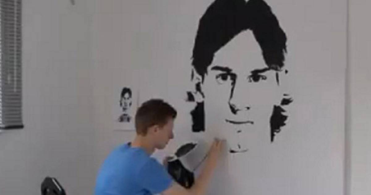 Este “artista” pasó más de cinco horas durante tres días para lograr pintar la cara de su ídolo en una pared de su casa.